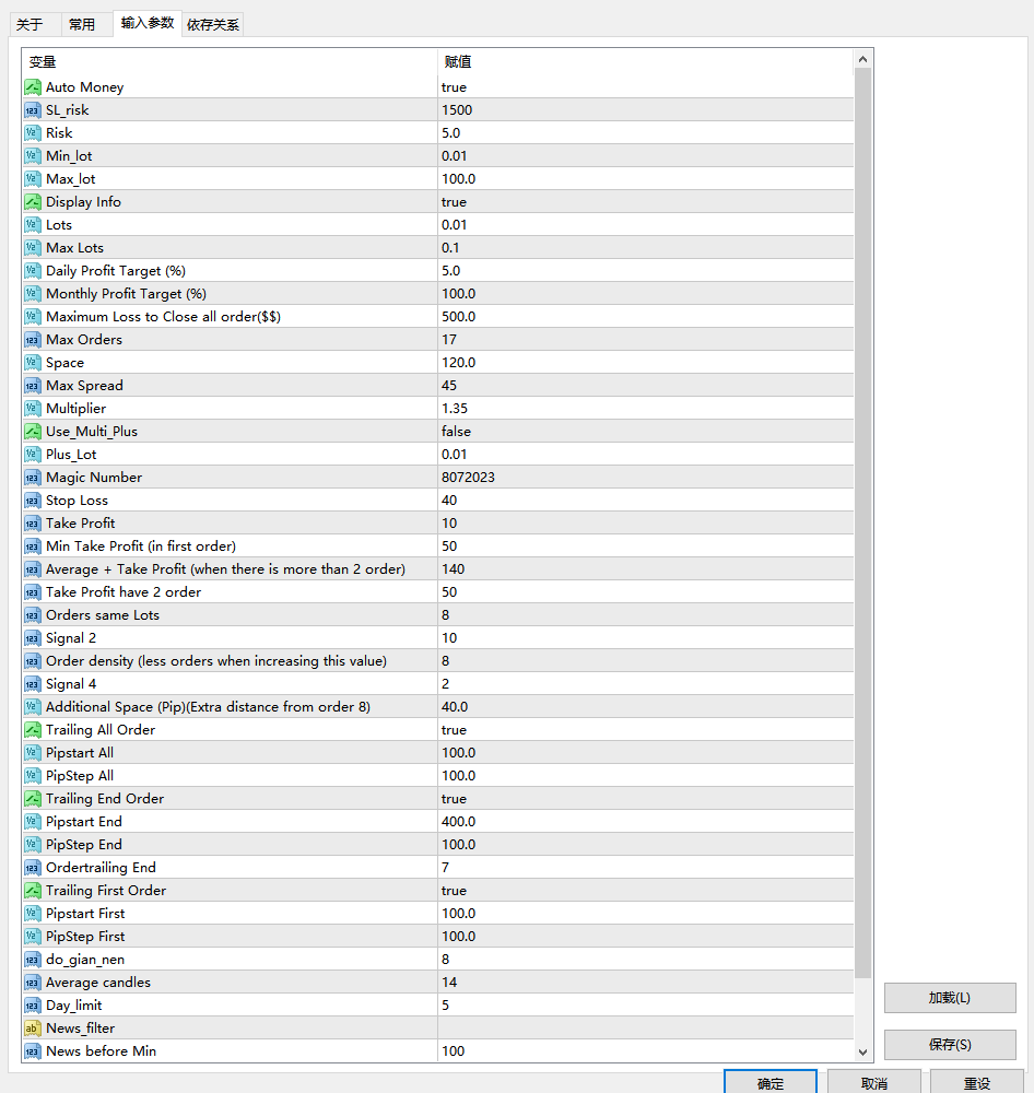文件里还配了3个参数,2个EA用的,1个指标用的新闻指标。