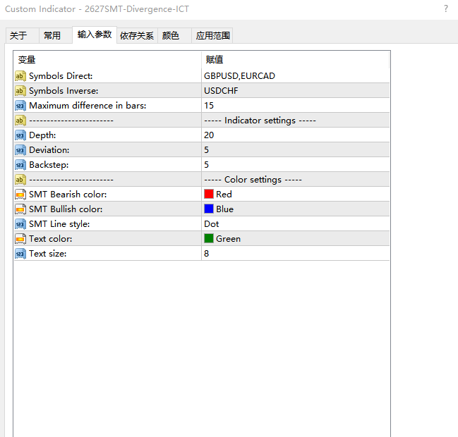 1、关联货币对设置:自主定义直接相关(Symbols Direct)与反向相关(Symbols Inverse)货币对,适配不同市场关联逻辑;