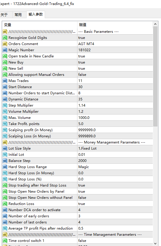 • 提供自动手数调整功能,根据账户余额和风险偏好动态调整交易手数,实现合理的仓位管理。同时也可设置固定手数,例如按照每1000美元对应0.01手的方式,依据账户规模来确定合适的交易手数,以控制交易风险。