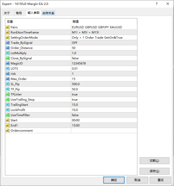 2、无时间过滤:启用`Use TimeFilter=false`,即不限制特定交易时段,24小时基于内部逻辑触发交易(默认起始时间`00:00`、结束时间`15:00`未生效)。