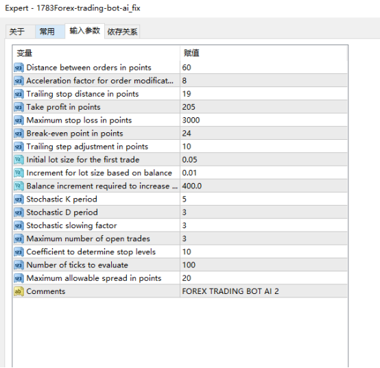 六、交易信号执行:EA根据设置的输入参数启动首笔交易,前10笔交易依赖设置中的参数,之后EA会通过分析已关闭的交易及其关闭时的市场条件,自主优化交易参数。在交易过程中,根据随机指标等内部指标生成交易信号,当满足交易信号条件且市场点差等过滤机制允许时,按照设置的风险参数和仓位管理规则执行交易,如开仓、平仓、调整止损止盈等操作。